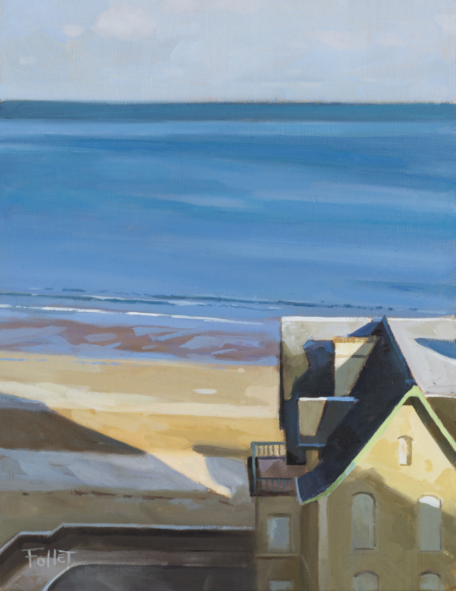 Fasciné par la lumière et motivé par la peinture sur le motif, il se rend d’abord en Suède dans l’idée de s’imposer d’autres défis…. Le goût du voyage et l’envie d’aventure picturale s’installent pour un temps, l’entraînant en Italie, à Rome puis en Andalousie, terre mauresque et flamboyante…mais c’est au Havre et sur la côte normande qu’il explore inlassablement la lumière en perpétuelle « inconstance » , celle qui lui impose de nouvelles projections. Palette à la main, il aime comprendre et saisir ce qui ordonne la logique des accords colorés en privilégiant les lumières matinales ou de fin de jour, justement à la lisière de la fuite, les moments ultimes où les sujets dévoilent leur poésie intime.